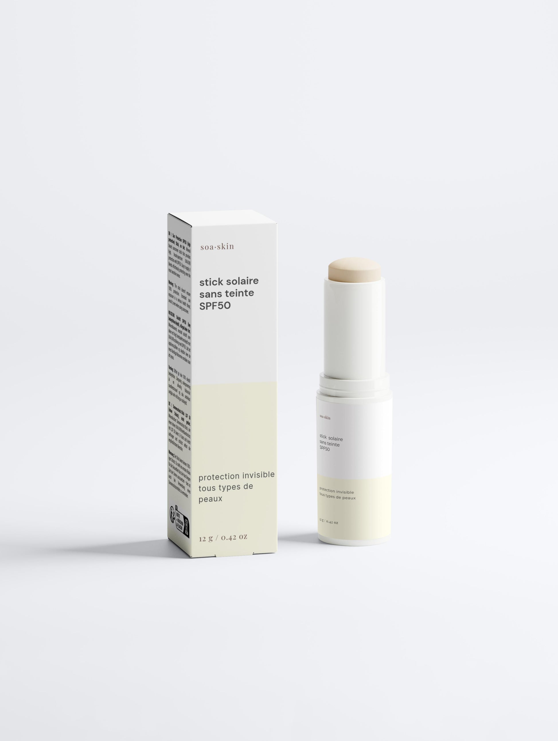 Le stick solaire Soa·Skin SPF 50 offre une protection à large spectre contre les rayons UVA/UVB grâce à sa formule minérale douce et respectueuse de la peau.